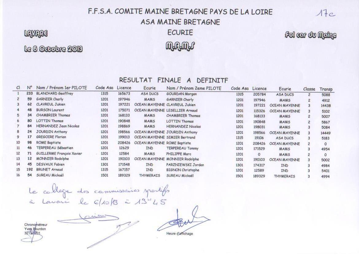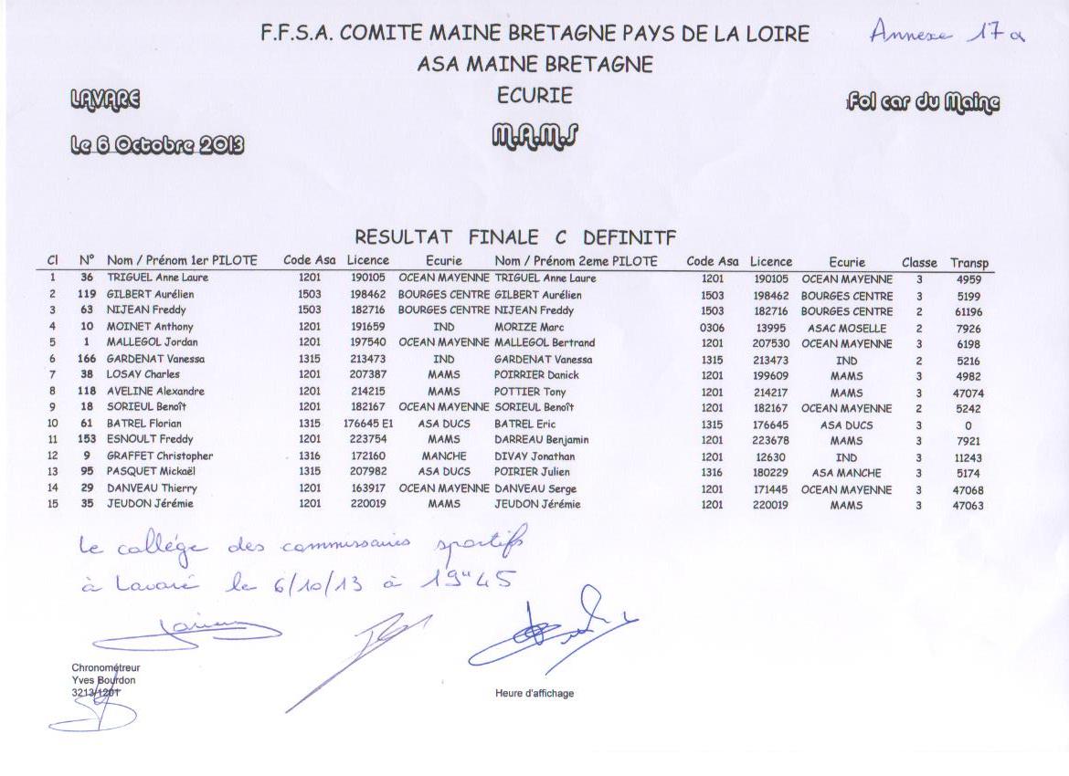 RESULTAT LAVARE 06 10 2013 FINAL A . B et C